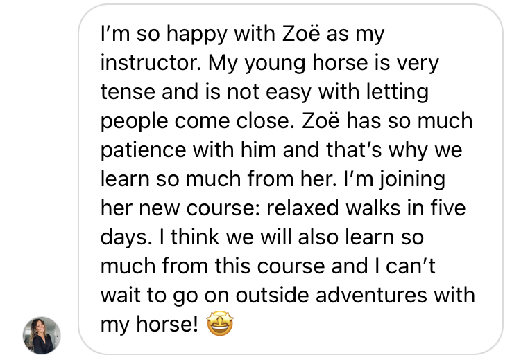 Happy Horsemanship isn't about quick fixes, specific tricks or tools you need to purchase from us. We're about understanding and listening to your horse. In our courses you learn to observe your horse's behavior and understand what he is trying to tell you with it. With your body language and the groundwork exercises you learn in the courses, you will be able to help your horse and fix whatever he struggles with. Either mentally of physically. With enough practice, you'll even be able to prevent future struggles!