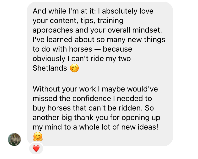 This is for ALL horse lovers! ;) We start with some basics, which are always a good idea to repeat with your horse. But further into the courses there are some challenging exercises to work towards with your horse. People with more experience with groundwork will definitely enjoy those lessons!